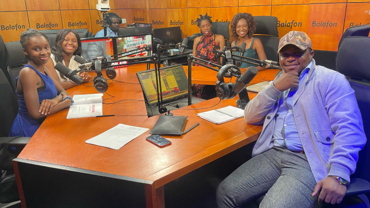 The family posing with Anchor Boris Bangteke after appearing on the Radio Balafon